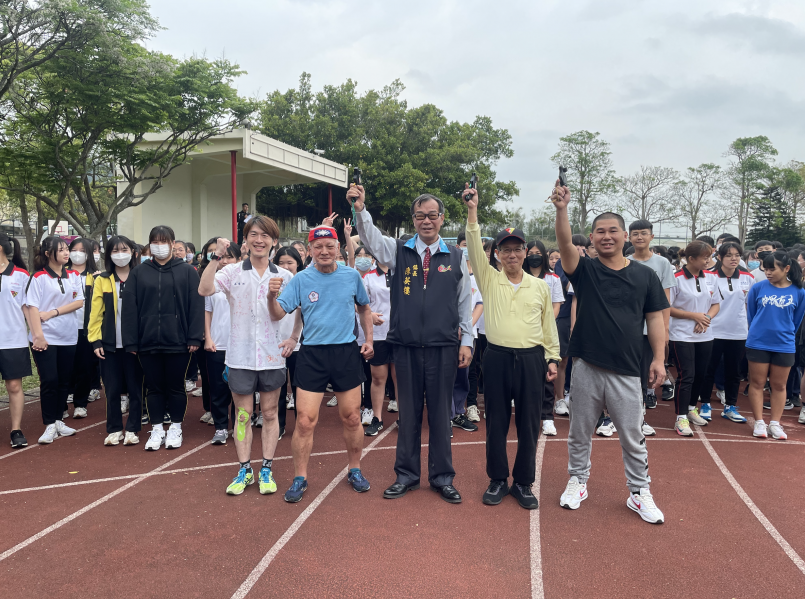 照片:新埔鎮長-陳英樓、內思高工校長-湯誌龍,以及貴賓們一同名槍起跑。