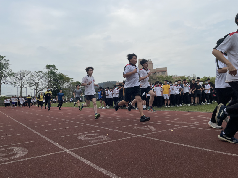 越野賽跑共分成,女生組、高三組、高二組、高一組,三個組別,依序出發由於我還有鳴槍任務,所以我參加高一組。