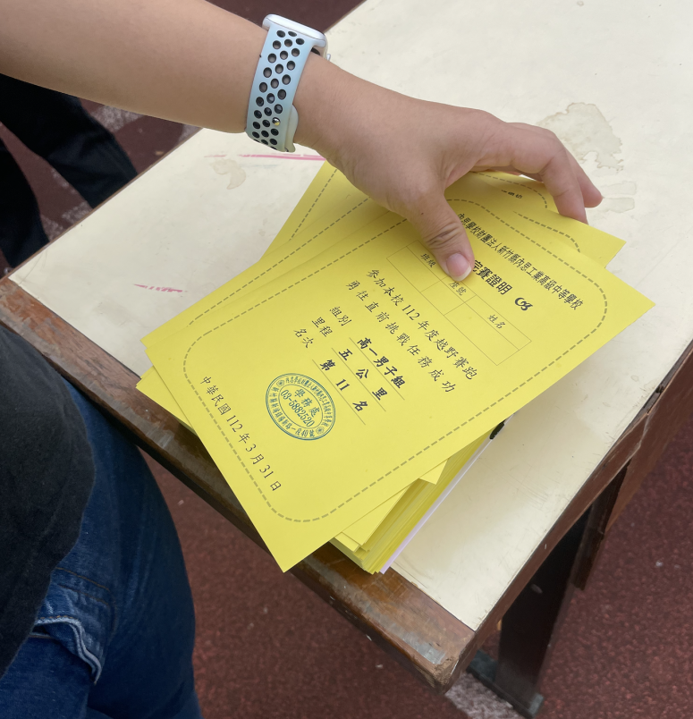 照片:學務處發的名次卡。