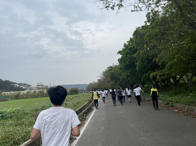 終點的氛圍和我想的不太ㄧ樣,沒有音樂、沒有舞台表演、沒有完賽禮,只有成群成群的同學,逐漸飄起小雨,老師叮嚀著快回去教室,我混入人群,和同學們ㄧ起走回教室。