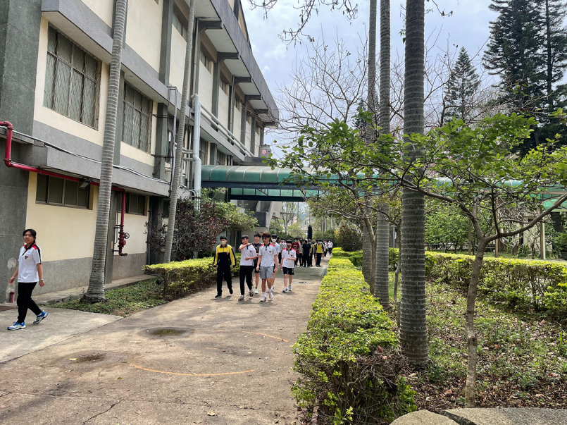 照片:午休結束,同學陸續往操場移動。